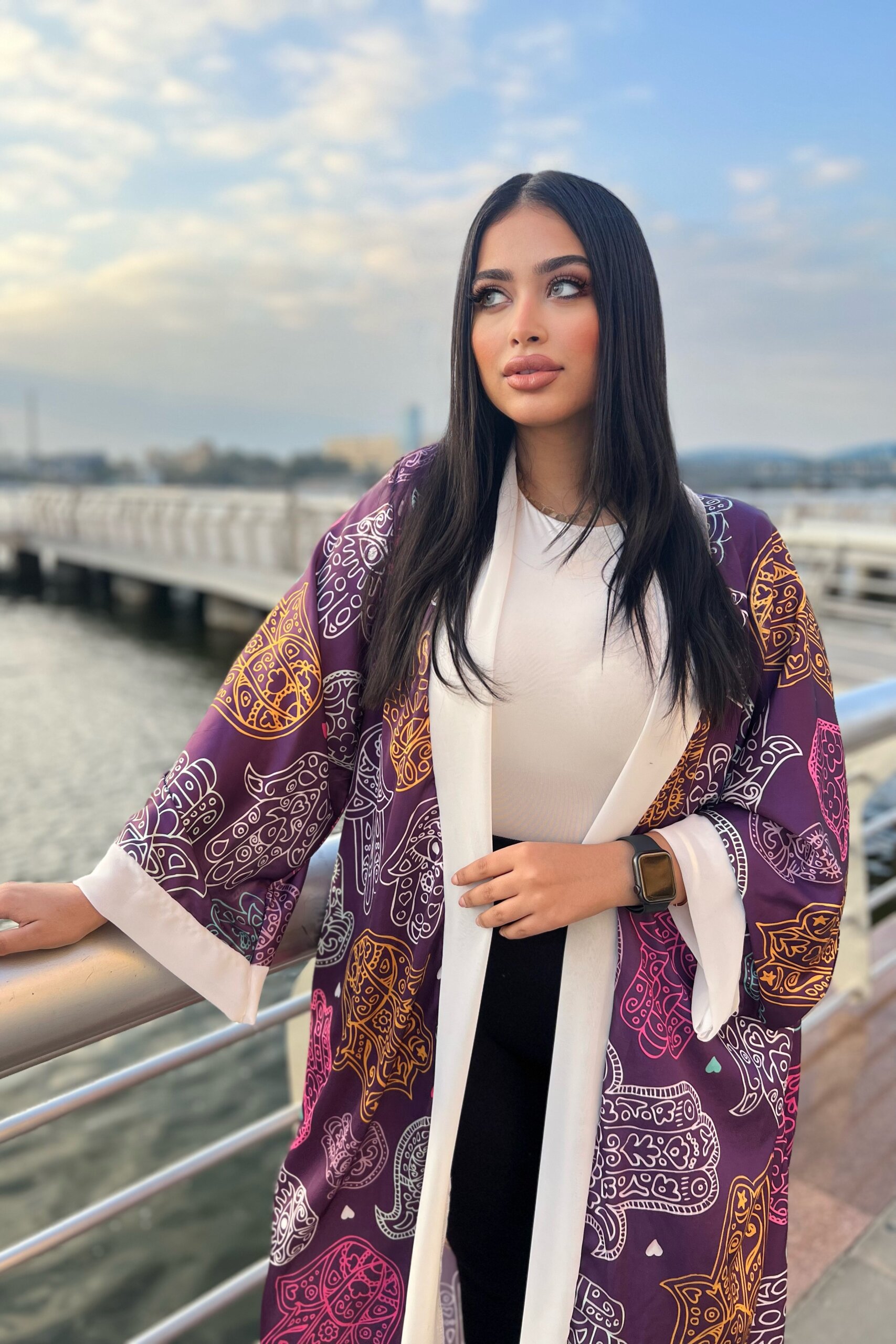 A colorful kaftan with statement cuffs for a bold, elegant look.